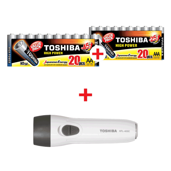 Αλκαλικές Μπαταρίες TOSHIBA LR06 AA (20 Τεμάχια) + TOSHIBA LR03 AAA (20 Τεμάχια) + Δώρο Φακός KFL-403C