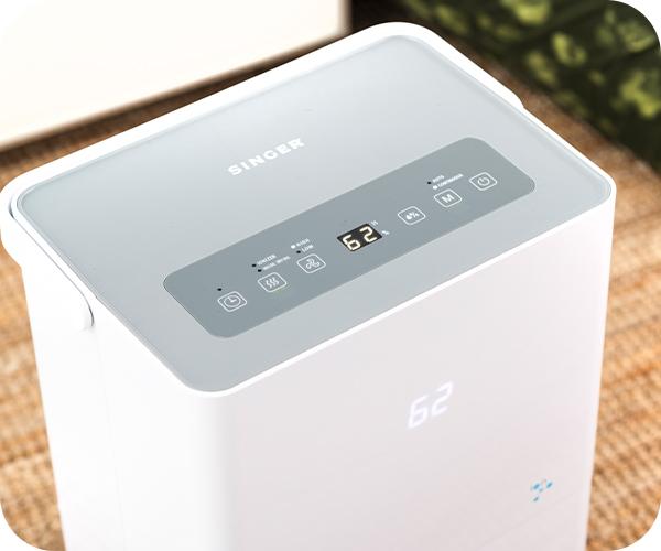 Ο SINGER Pure Dry Ion διαθέτει LED οθόνη και ηλεκτρονικό πίνακα ελέγχου, για εύκολη και άμεση πρόσβαση στις λειτουργίες του. Η LED οθόνη σου παρέχει μια καθαρή και ευκρινή απεικόνιση των τρεχουσών ρυθμίσεων και των επιπέδων υγρασίας στον χώρο, διευκολύνοντας την παρακολούθηση και τον έλεγχο της απόδοσης του αφυγραντήρα. Παράλληλα, o ηλεκτρονικός πίνακας ελέγχου σου επιτρέπει να ρυθμίζεις με ακρίβεια όλες τις λειτουργίες του αφυγραντήρα, όπως το επιθυμητό επίπεδο υγρασίας, τη λειτουργία του ιονιστή, καθώς και τη λειτουργία χρονοδιακόπτη.