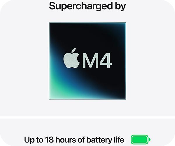 Το Apple M4 chip σού προσφέρει ακόμα περισσότερη ταχύτητα και ομαλή ροή σε όλα όσα κάνεις, όπως όταν εργάζεσαι ταυτόχρονα σε πολλά apps, επεξεργάζεσαι βίντεο ή παίζεις παιχνίδια με απαιτητικά γραφικά.