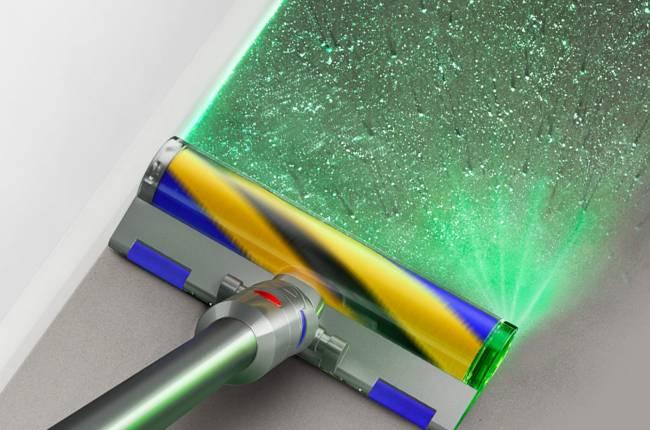 Η DYSON V12 Detect Slim Absolute ασύρματη σκούπα διαθέτει μια ακριβώς κεκλιμένη δέσμη φωτός που κάνει ορατή τη σκόνη που είναι αόρατη με γυμνό μάτι στα σκληρά δάπεδα. Με αυτόν τον τρόπο δεν σου ξεφεύγει ούτε ένα μικροσκοπικό σωματίδιο κατά τον καθαρισμό.
