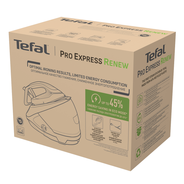 Το TEFAL GV9E22E0 PerfectCare Pro Express Eco, δεν φροντίζει μόνο τα ρούχα σου, αλλά και το περιβάλλον. Είναι ανακυκλώσιμο κατά 70%, κατασκευασμένο με πάνω από 40% ανακυκλωμένα υλικά και συνοδεύεται από βιώσιμη, οικολογική συσκευασία.