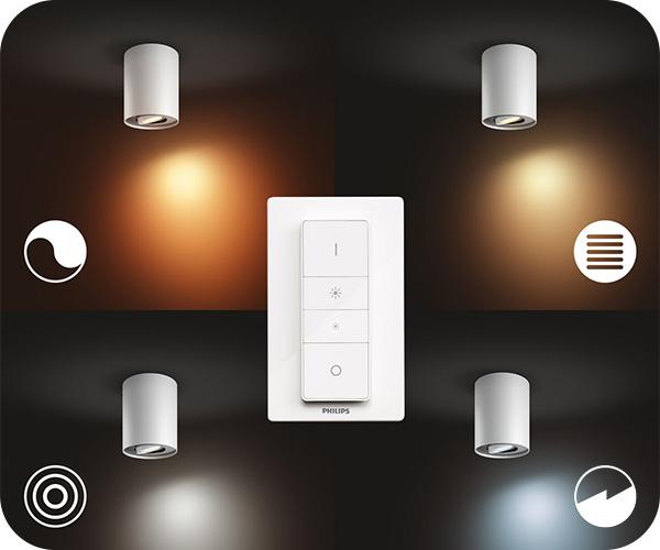 Το μονό σποτ PHILIPS HueWhite Ambiance Pillar, προσφέρει την ιδανική λύση φωτισμού για κάθε δωμάτιο του σπιτιού. Με τη δυνατότητα ρύθμισης από θερμό έως ψυχρό λευκό φως, δημιουργείς την ατμόσφαιρα που επιθυμείς για κάθε στιγμή της ημέρας. Πλέον, ο έλεγχος του φωτισμού είναι απλός και βολικός, έτσι μπορείς να τον αναλάβεις εύκολα με τον παρεχόμενο διακόπτη Hue ή μέσω της εφαρμογής Bluetooth στο smartphone σου. Από την άνεση του καναπέ σου ή από οπουδήποτε αλλού, η εφαρμογή επιτρέπει τον έλεγχο του φωτισμού σου με μια προσαρμοσμένη ακρίβεια. Επιπλέον, συνδέοντας το σύστημα Philips Hue στο διαδίκτυο, μπορείς να έχεις πρόσβαση σε επιπλέον λειτουργίες, όπως προγραμματισμό, αυτοματισμό και αλληλεπίδραση με άλλες έξυπνες συσκευές στο σπίτι. Τέλος, περιλαμβάνει τον Hue διακόπτη Dimmer, με τον οποίο μπορείς να ρυθμίζεις το επίπεδο φωτεινότητας μέσω αυτού, ενώ αποδεικνύεται απόλυτα εύχρηστος, καθώς έχεις τη δυνατότητα να τον χρησιμοποιήσεις και ως χειριστήριο (λειτουργεί με μπαταρίες) για να το έχεις διαρκώς δίπλα σου!