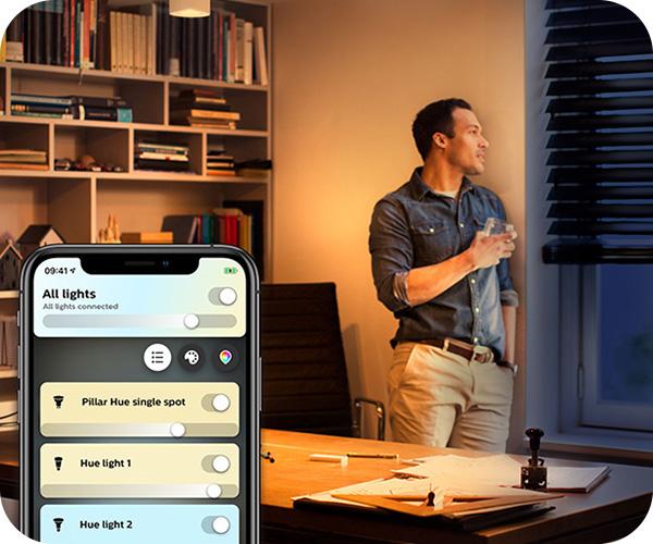 Με την εφαρμογή Hue Bluetooth, ο έλεγχος είναι στα χέρια σου. Μπορείς να προσθέσεις έως και 10 έξυπνα φώτα και να τα ελέγξεις όλα μαζί με ένα απλό άγγιγμα στην κινητή σου συσκευή. Επιπλέον, με αυτήν την εφαρμογή, μπορείς να προσαρμόσεις το χρώμα, τη φωτεινότητα και την ατμόσφαιρα του φωτισμού σου με άνεση. Απλώς άνοιξε την εφαρμογή, επέλεξε τα φώτα που θέλεις να ελέγξεις και προσάρμοσε τις ρυθμίσεις σου με ένα μόνο άγγιγμα.