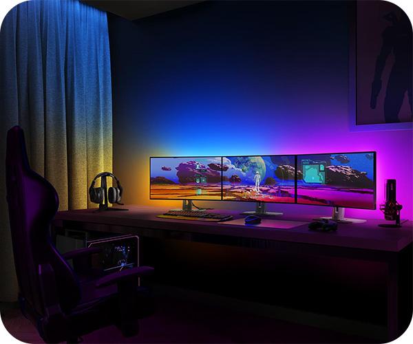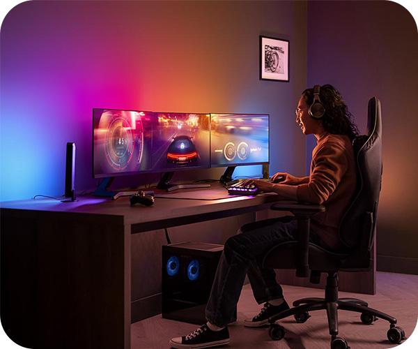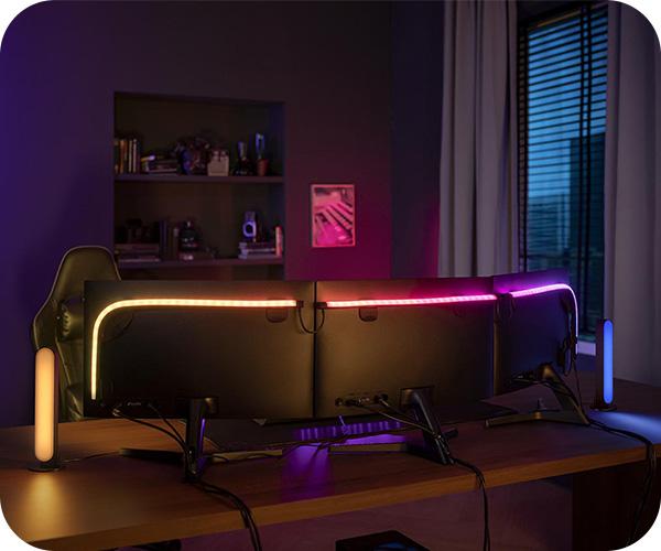 H έξυπνη ταινία φωτισμού PHILIPS Hue play gradient για monitor 24'' έως 27'' είναι η μόνη μάρκα έξυπνου φωτισμού που συγχρονίζει εύκολα τα έξυπνα φώτα με δυνατότητα χρωματιστού φωτισμού με ταινίες και βιντεοπαιχνίδια για να παρέχει μια συναρπαστική οικιακή ψυχαγωγία. Η τεχνολογία Hue Sync αλλάζει τα πάντα, αναγνωρίζοντας το περιεχόμενο που παρακολουθείς ή παίζεις και μεταφράζοντάς το σε ένα σενάριο άμεσου φωτισμού για να δημιουργήσει στον χώρο μια εμπειρία γεμάτη από χρώματα.