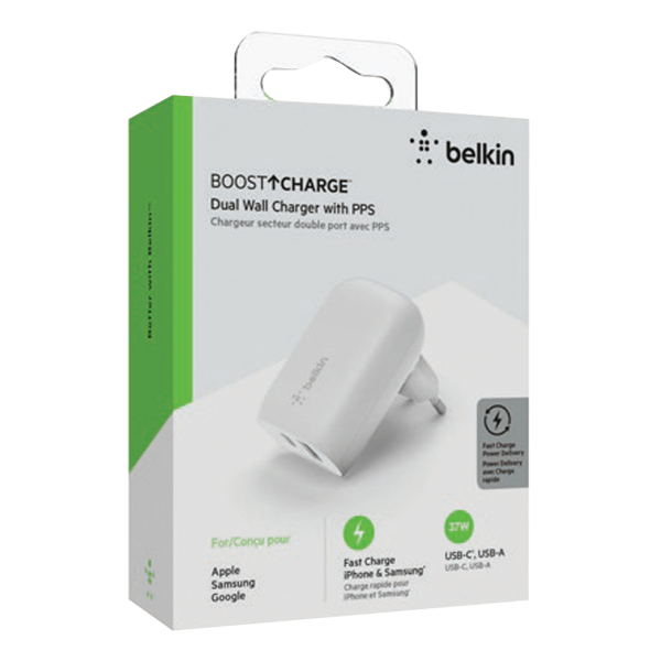 Με τον φορτιστή ταξιδίου BELKIN Boost Charge Dual USB-A με PPS 37W θα έχεις όλη την ενέργεια που χρειάζονται οι συσκευές σου σε ελάχιστο χρόνο και με ασφάλεια! Συμπαγής και ελαφρύς διακρίνεται από εύκολη φορητότητα ώστε να μπορείς με άνεση να τον παίρνεις μαζί σου οπουδήποτε ενώ, χάρη στον σχεδιασμό του, δεν μπλοκάρει άλλες συσκευές, για παράδειγμα σε ένα πολύπριζο. Σε κάθε περίπτωση, αυτό που κάνει τη διαφορά είναι η υποστήριξη γρήγορης φόρτισης Power Delivery μέσω θύρας USB-C (25W), με την μπαταρία του συμβατού iPhone σου να είναι εφικτό να προσεγγίσει το 50% ακόμα και μετά από μόλις 25 λεπτά φόρτισης και του συμβατού Samsung σου σε μόλις 26 λεπτά φόρτισης! Επιπλέον, ενσωματώνει και θύρα USB-A για να έχεις τη δυνατότητα ταυτόχρονης φόρτισης και δεύτερης συσκευής (12W), για απόλυτη ευελιξία. Κι όλα αυτά με αξιοπιστία και ασφάλεια χάρη και στην τεχνολογία PPS που ενσωματώνει με αυτόματη ανίχνευση βέλτιστης φόρτισης (βέλτιστη ισχύ έως 20W για iPhone 12, 18W για iPhone 8 έως iPhone 11 και 25W για Samsung), για να μην έχεις κανένα άγχος για την καλή λειτουργία της πολύτιμης συσκευής σου!
