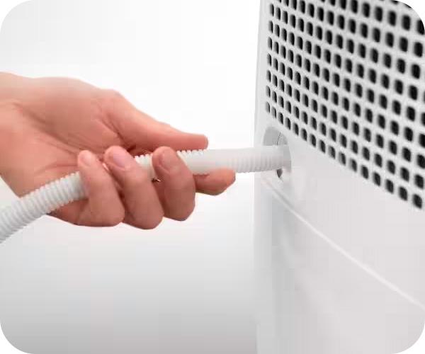 Ο αφυγραντήρας Delonghi διαθέτει διπλό σύστημα αφύγρανσης, αυτό σημαίνει πως μπορείς να συλλέξεις έως και 2.1 λίτρα νερού στο ενσωματωμένο δοχείο, είτε να το εξάγεις απευθείας στην αποχέτευση μέσω του ειδικού σωλήνα μήκους 1m, για ασταμάτητη λειτουργία.