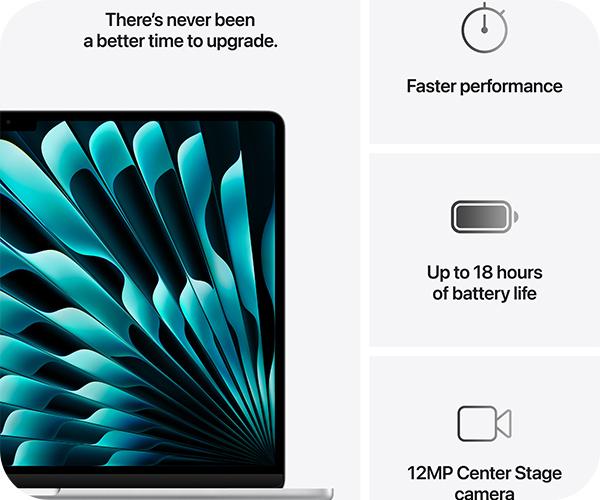 Το MacBook Air 15 ιντσών προσφέρει ακόμα περισσότερο χώρο στην οθόνη για πολλαπλές εργασίες και το μοντέλο 13.6 ιντσών είναι ο απόλυτος φορητός υπολογιστής εν κινήσει.
