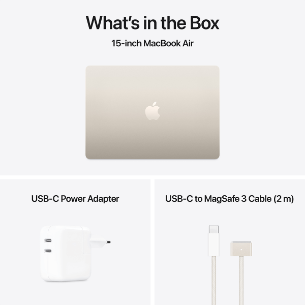 Το MacBook Air διαθέτει δύο θύρες Thunderbolt 4, θύρα φόρτισης MagSafe, υποδοχή ακουστικών, Wi-Fi 6E και Bluetooth 5.3. Και υποστηρίζει έως και δύο εξωτερικές οθόνες.