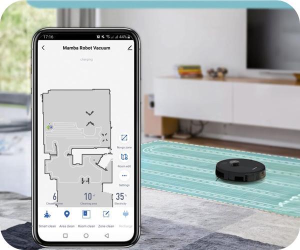 Η σκούπα ρομπότ Mamba RM-01 σου επιτρέπει να απολαύσεις πλήρη έλεγχο και ευελιξία μέσω της εφαρμογής κινητού και της υποστήριξης φωνητικών εντολών. Μέσω της εφαρμογής έχεις πλήρη έλεγχο από οπουδήποτε, ανά πάσα στιγμή. Μπορείς να προγραμματίσεις τον χρόνο καθαρισμού, να επιλέξεις λειτουργίες και τέλος να παρακολουθήσεις την πορεία της σκούπας σε πραγματικό χρόνο. Ακόμα η ενσωματωμένη προηγμένη υποστήριξη φωνητικών εντολών, σου επιτρέπει να έχεις τον έλεγχο της σκούπας με φυσική επικοινωνία. Με απλές φωνητικές εντολές, μπορείς να εκκινήσεις, να διακόψεις, ή να προγραμματίσεις τον καθαρισμό, προσθέτοντας μια ακόμα διάσταση έξυπνης επικοινωνίας.