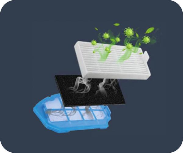 Η σκούπα ρομπότ Mamba RM-01 είναι εξοπλισμένη με φίλτρο HEPA 14, μια τεχνολογία προηγμένης φιλτράρισης που εξασφαλίζει την υψηλότερη δυνατή ποιότητα αέρα κατά τη διάρκεια της λειτουργίας του ρομπότ. Το φίλτρο HEPA 14 είναι γνωστό για την αποτελεσματική του δράση στην απομάκρυνση σωματιδίων, όπως σκόνη, αλλεργιογόνα, μικρόβια και άλλα ανεπιθύμητα σωματίδια, παρέχοντας καθαρό αέρα στο περιβάλλον.