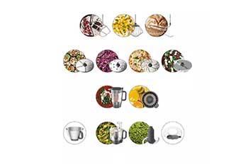 Η συσκευασία περιλαμβάνει ανοξείδωτο μπολ 4,3L με χερούλι, καπάκι προστασίας από πιτσιλίσματα, αναδευτήρα Κ, ανοξείδωτο σύρμα χτυπήματος και γάντζο ζύμης, καθώς και επιπλέον εξαρτήματα όπως blender 1.5L, λεμονοστύφτη και κόφτη τροφίμων 1.2L με ανοξείδωτες λεπίδες και 3 δίσκους κοπής, για να ετοιμάζεις εύκολα πολλές διαφορετικές παρασκευές στην κουζίνα.