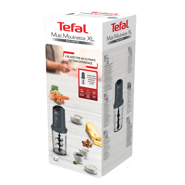 Ανακάτεψε, ψιλόκοψε και ανάμειξε όλα τα είδη υλικών με απόλυτη ευκολία! Ο Multi Moulinette XXL της Tefal είναι ένας ισχυρός και πρακτικός πολυκόπτης σχεδιασμένος να κάνει την προετοιμασία φαγητού γρήγορη και άνετη. Με μεγάλο μπολ 800 ml, σε βοηθά να εξοικονομήσεις χρόνο και κόπο. Επιπλέον, οι 6 λεπίδες από ανοξείδωτο ατσάλι προσφέρουν άψογα και γρήγορα αποτελέσματα σε κάθε χρήση, ενώ ο διπλός έλεγχος ταχύτητας σου δίνει τη δυνατότητα να πετύχεις την ιδανική υφή, από χοντροκομμένα έως πολύ ψιλοκομμένα υλικά.