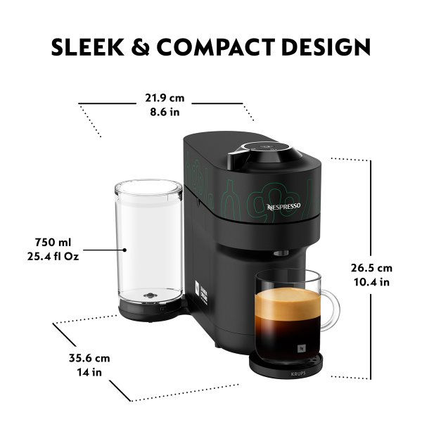 Με το πάτημα ενός μόνο κουμπιού, ανακαλύπτεις τη μαγεία πίσω από τα διάφορα μεγέθη κούπας που προσφέρει η Vertuo Pop+, από τον εκρηκτικό Espresso μέχρι τον κλασικό Signature Mug. Επιπλέον, κάθε ανακυκλώσιμη κάψουλα καφέ εξάγεται αυτόματα με το άνοιγμα της κεφαλής, προσφέροντάς σου μια απλή και αποτελεσματική διαδικασία, ενώ, η πρακτικότητα αυξάνεται με την δυνατότητα προσαρμογής του στηρίγματος κούπας σε τρεις θέσεις ή ακόμη και την πλήρη αφαίρεσή του, επιτρέποντάς σου να προσαρμόσεις τη διαδικασία παρασκευής του καφέ ανάλογα με τις ανάγκες σου. Παράλληλα, το λογισμικό της ενημερώνεται αυτόματα μέσω σύνδεσης Bluetooth® και Wi-Fi, προσφέροντας σου πάντα μια μοναδική εμπειρία. Τέλος, κατασκευασμένη από ανακυκλωμένο πλαστικό κατά 35%, η μηχανή καφέ δεν αποτελεί μόνο ένα εξαιρετικό προϊόν, αλλά συμβάλει και στη δημιουργία ενός πιο βιώσιμου μέλλοντος, αναβαθμίζοντας ακόμα περισσότερο την εμπειρία καφέ.