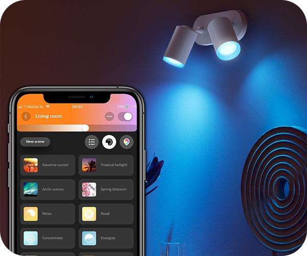 Με την εφαρμογή Hue Bluetooth, ο έλεγχος είναι στα χέρια σου. Μπορείς να προσθέσεις έως και 10 έξυπνα φώτα και να τα ελέγξεις όλα μαζί με ένα απλό άγγιγμα στην κινητή σου συσκευή. Επιπλέον, με αυτήν την εφαρμογή, μπορείς να προσαρμόσεις το χρώμα, τη φωτεινότητα και την ατμόσφαιρα του φωτισμού σου με άνεση. Απλώς άνοιξε την εφαρμογή, επέλεξε τα φώτα που θέλεις να ελέγξεις και προσάρμοσε τις ρυθμίσεις σου με ένα μόνο άγγιγμα.