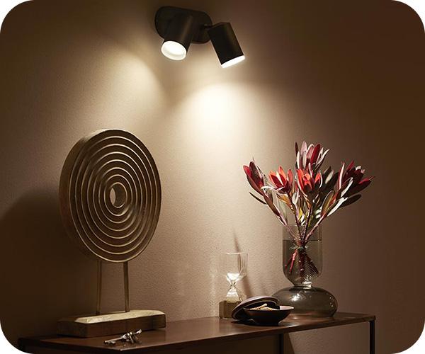 Με το διπλό σποτ PHILIPS Hue White and Color Ambiance Fugato, δημιουργείς το ιδανικό σκηνικό για το σαλόνι ή την κρεβατοκάμαρά σου. Αυτό το εξαιρετικά προηγμένο φωτιστικό προσφέρει οποιοδήποτε τόνο του λευκού, από ζεστό και φωτεινό έως δροσερό και ατμοσφαιρικό, ενώ παράλληλα παρέχει περισσότερα από 16 εκατομμύρια χρώματα για να δημιουργήσεις την τέλεια ατμόσφαιρα στον χώρο σου. Επιπλέον, με τη χρήση του Bluetooth, έχεις άμεσο έλεγχο του φωτισμού, με το άγγιγμα ενός μόνο κουμπιού στο κινητό σου. Αλλά για να απολαύσεις το πλήρες φάσμα των δυνατοτήτων, σύνδεσέ το Hue Fugato με μια γέφυρα Hue Bridge για προηγμένη λειτουργικότητα και προσαρμοσμένο έλεγχο μέσω της εφαρμογής Hue.