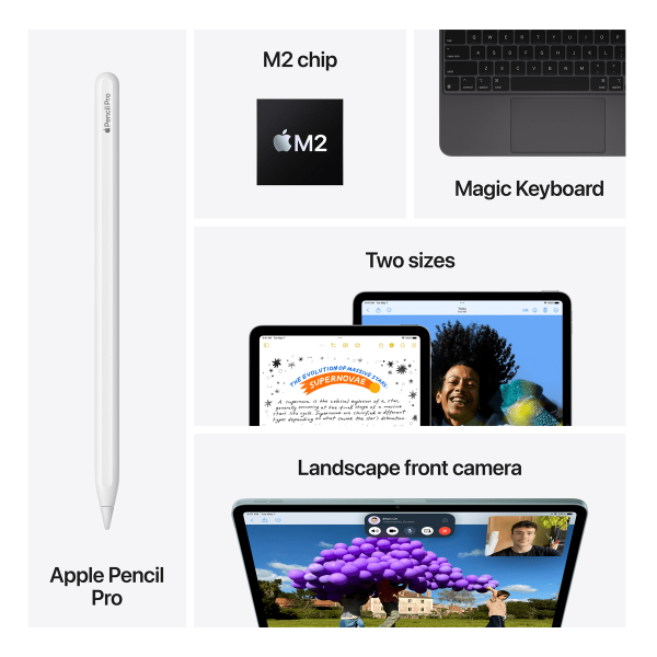 Το Apple Pencil Pro μεταμορφώνει το iPad Air σε έναν καθηλωτικό καμβά ζωγραφικής και στην καλύτερη συσκευή λήψης σημειώσεων της Apple Το Apple Pencil (USB-C) είναι επίσης συμβατό με το iPad Air. Το Magic Keyboard προσφέρει μια σπουδαία εμπειρία πληκτρολόγησης και μια ενσωματωμένη γυάλινη επιφάνεια αφής, ενώ παράλληλα λειτουργεί και ως προστατευτικό κάλυμμα για το iPad. Τα αξεσουάρ πωλούνται χωριστά.