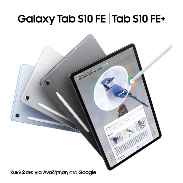 Το SAMSUNG Galaxy Tab S10 FE, διαθέτει μια εμβληματική εμφάνιση που συνδυάζει κομψότητα και λειτουργικότητα. Με 3 μοναδικά χρώματα Gray, Silver και Blue, θα μπορείς εύκολα να επιλέξεις αυτό που σου αρέσει. Είτε το κρατάς στο χέρι σου, είτε το τοποθετείς πάνω σε ένα τραπέζι, η εμφάνισή του είναι σίγουρο ότι θα τραβήξει τα βλέμματα και θα κλέψει την παράσταση.