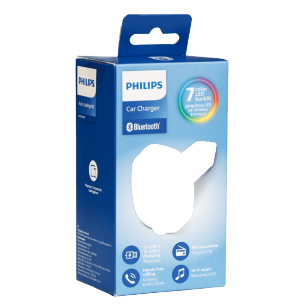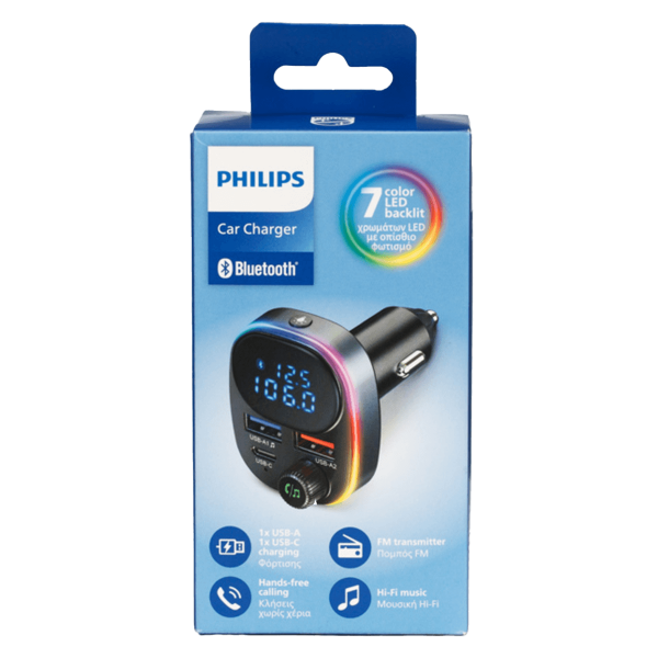 Ο φορτιστής αυτοκινήτου PHILIPS Dual με Bluetooth FM Transmitter προσφέρει ασύρματη σύνδεση μέσω Bluetooth 5.3, με εμβέλεια έως 10 μέτρα, εξασφαλίζοντας σταθερή και γρήγορη σύνδεση με το κινητό σου ή άλλες συσκευές. Μεταδίδει τον ήχο στην αγαπημένη σου συχνότητα FM (87.5 Mhz – 108.0 Mhz), επιτρέποντάς σου να απολαμβάνεις μουσική Hi-Fi ή hands-free κλήσεις με εξαιρετική ποιότητα ήχου κατά την οδήγηση.