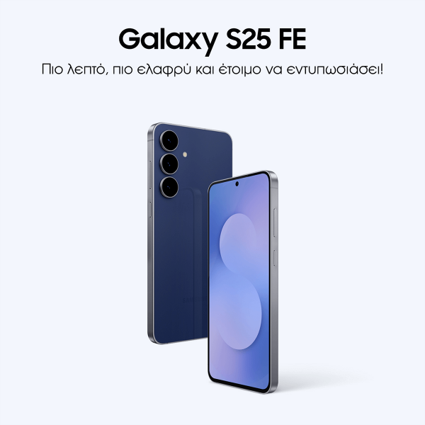 Ανακάλυψε το SAMSUNG Galaxy S25 FE Dual 5G, ένα premium Smartphone που συνδυάζει κομψό σχεδιασμό με κορυφαίες επιδόσεις. Με την Dynamic AMOLED 2X οθόνη, 6.7 ιντσών στα 120Hz απολαμβάνεις εντυπωσιακή ευκρίνεια και ομαλή εμπειρία, ενώ το ισχυρό Exynos 2400 (4nm) φροντίζει για ασταμάτητη ταχύτητα σε κάθε χρήση. Οι τριπλές κάμερες των 50MP + 12MP + 8MP με OIS και 3x οπτικό zoom απογειώνουν τη φωτογραφία σου, ενώ η μπροστινή κάμερα 12MP εξασφαλίζει κρυστάρινες selfies. Επιπλέον, με 8GB RAM και αποθηκευτικό χώρο έως 512GB, το multitasking γίνεται παιχνιδάκι, ενώ η μπαταρία των 4.900mAh με Super Fast Charging 2.0, ασύρματη φόρτιση και PowerShare σου χαρίζει ελευθερία χωρίς περιορισμούς. Και με πιστοποίηση IP68, είσαι έτοιμος για κάθε πρόκληση.