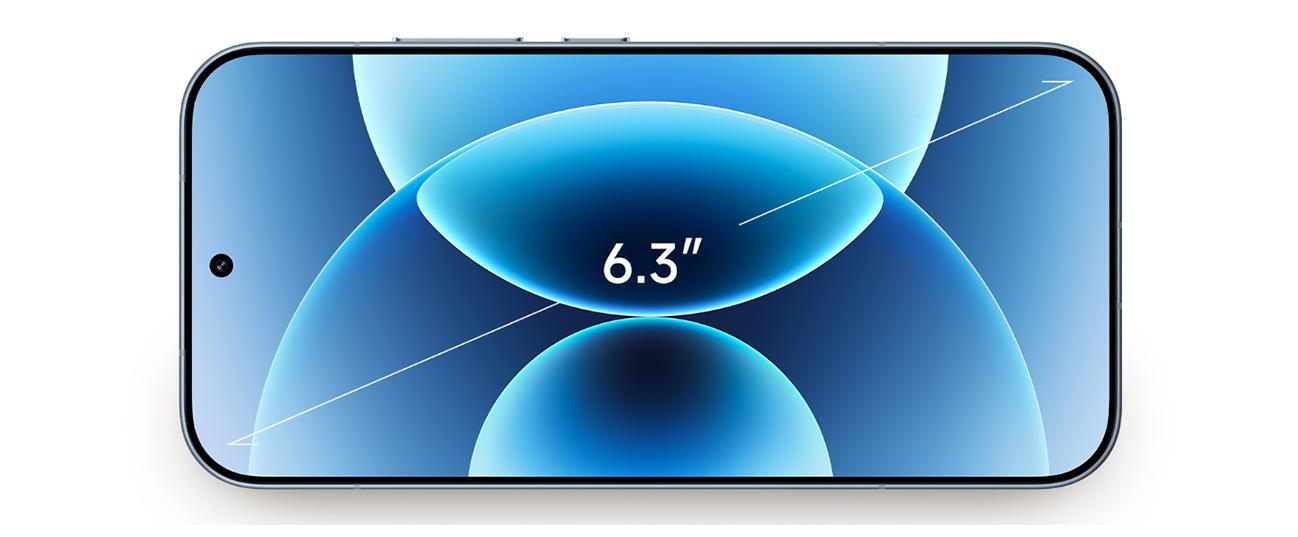 Η οθόνη 6.3" CrystalRes OLED προσφέρει ανάλυση 2656 × 1220 pixels (460 ppi), ρυθμό ανανέωσης 1–120Hz, μέγιστη φωτεινότητα 3500 nits και υποστήριξη HDR10+ και Dolby Vision.