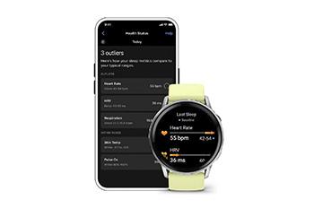 Δες αν οι μετρήσεις της υγείας σου, όπως καρδιακοί παλμοί, HRV, θερμοκρασία δέρματος και Pulse Ox στον ύπνο, αποκλίνουν από το συνηθισμένο σου εύρος, ώστε να εντοπίζεις εγκαίρως πιθανό στρες ή επιβάρυνση στο σώμα.